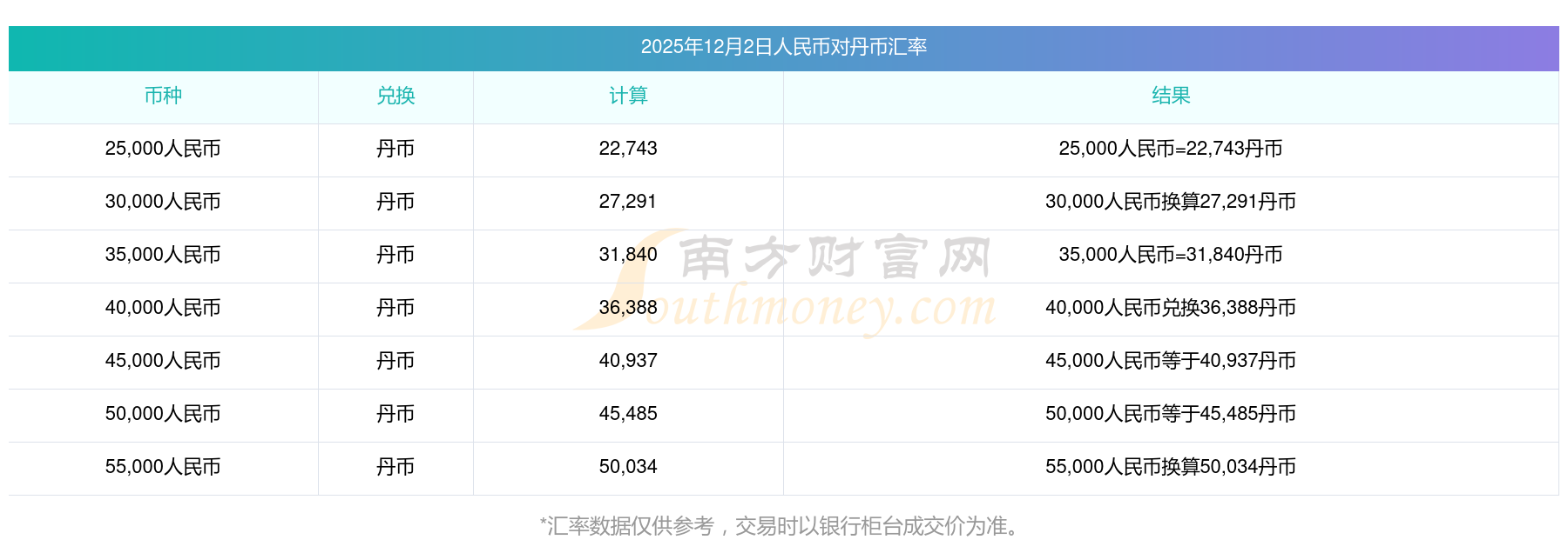 今日汇率中间价:人民币1元对多少丹麦克朗2025年12月2日