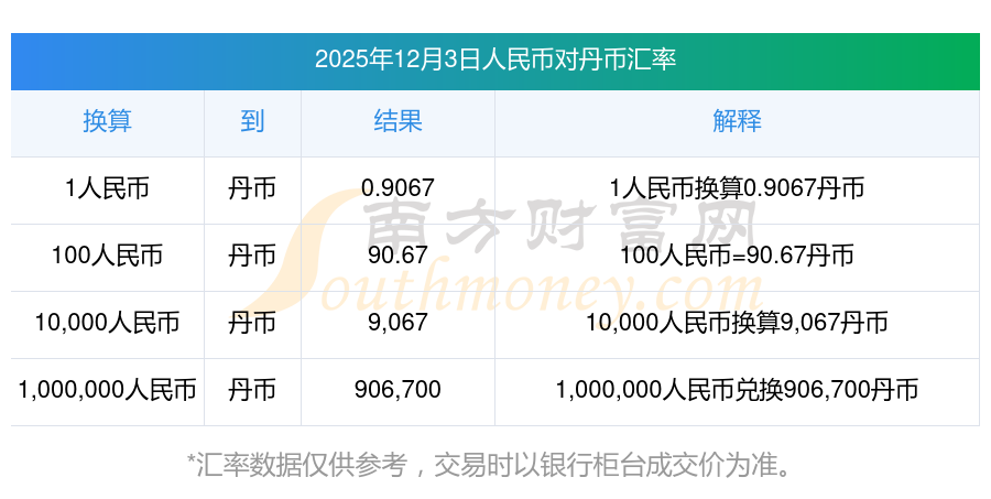 南方财富网为您提供人民币对丹币汇率最新价格详情。