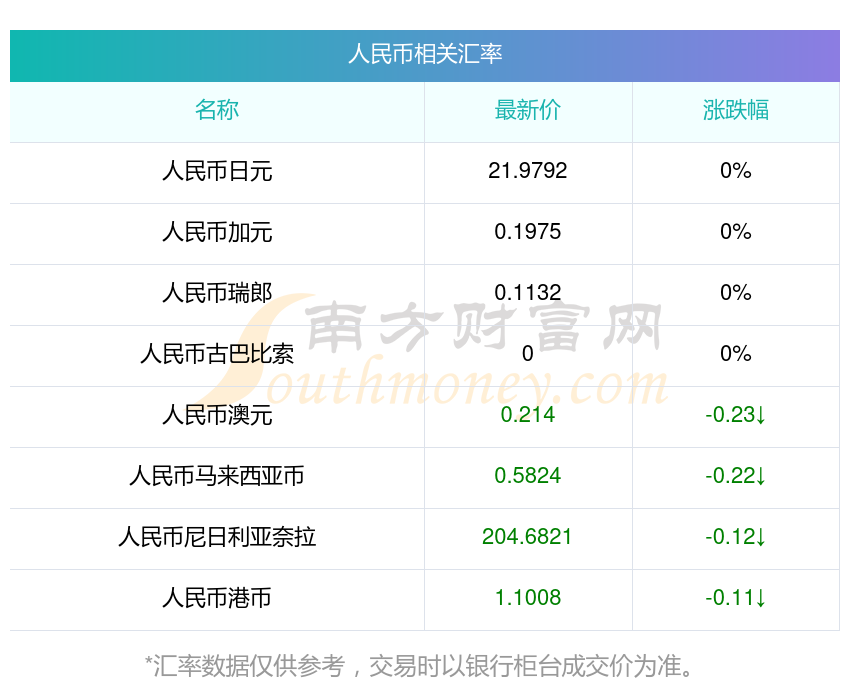 汇率在每一分钟或都不尽相同,请以实际兑换或交易时的汇率为准,您或许看到有些数据延迟或提前发布,这是由于数据公布机构有时未必会准时发布所导致,请以实际为准。