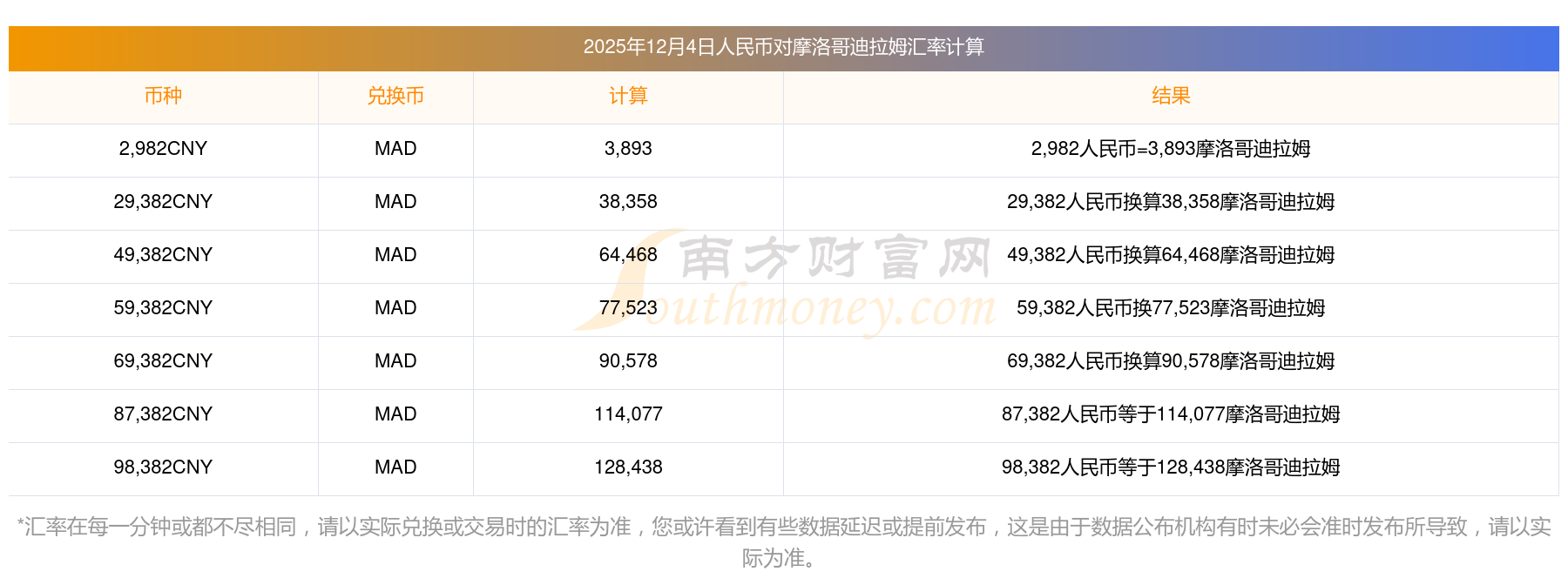 用46人民币换摩洛哥迪拉姆汇率计算多少? 12-04