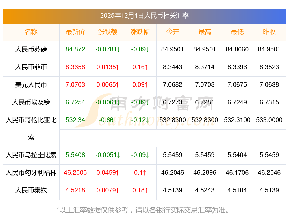 本站提供的汇率仅供参考,最终以各银行实际交易汇率为准。对使用当前汇率所导致的结果概不承担任何责任。