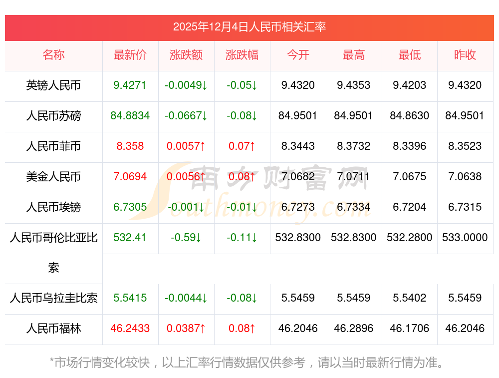 2025年12月4日人民币兑换缅币最新汇率:297.050800,今开:297.1054,昨收:297.2904,最高:297.1369,最低:296.9857。