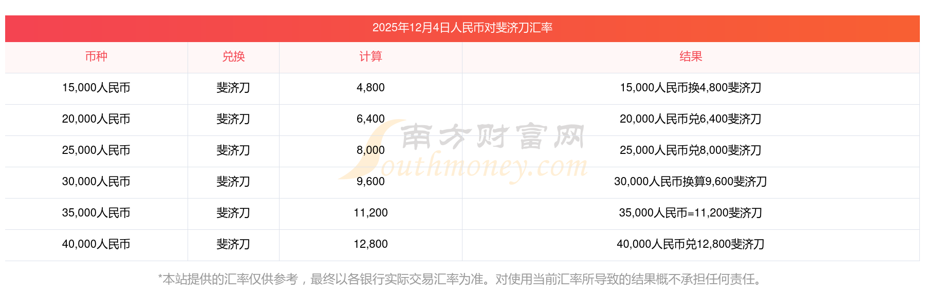 今天人民币140换成斐济刀汇率多少?2025/12/4