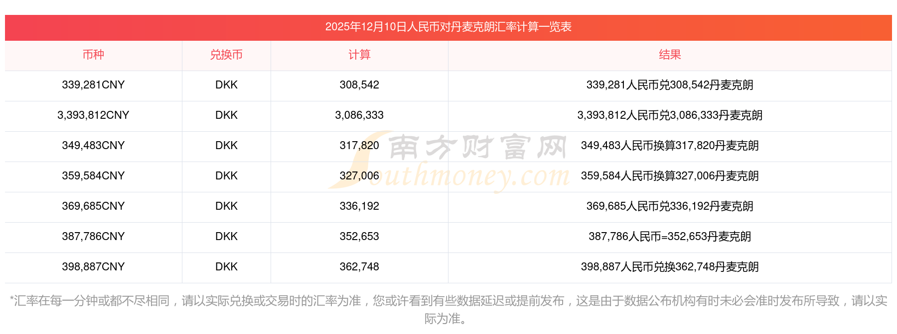 今日汇率中间价:人民币对丹麦克朗多少2025年12月10日