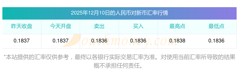 今日汇价查询:2025年12月10日40人民币兑新币汇价一览