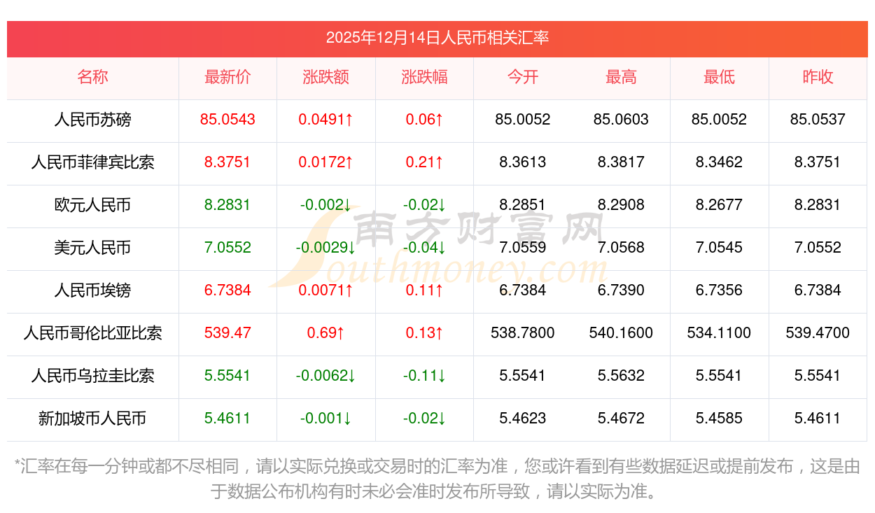 2025年12月14日人民币相关汇率查询
