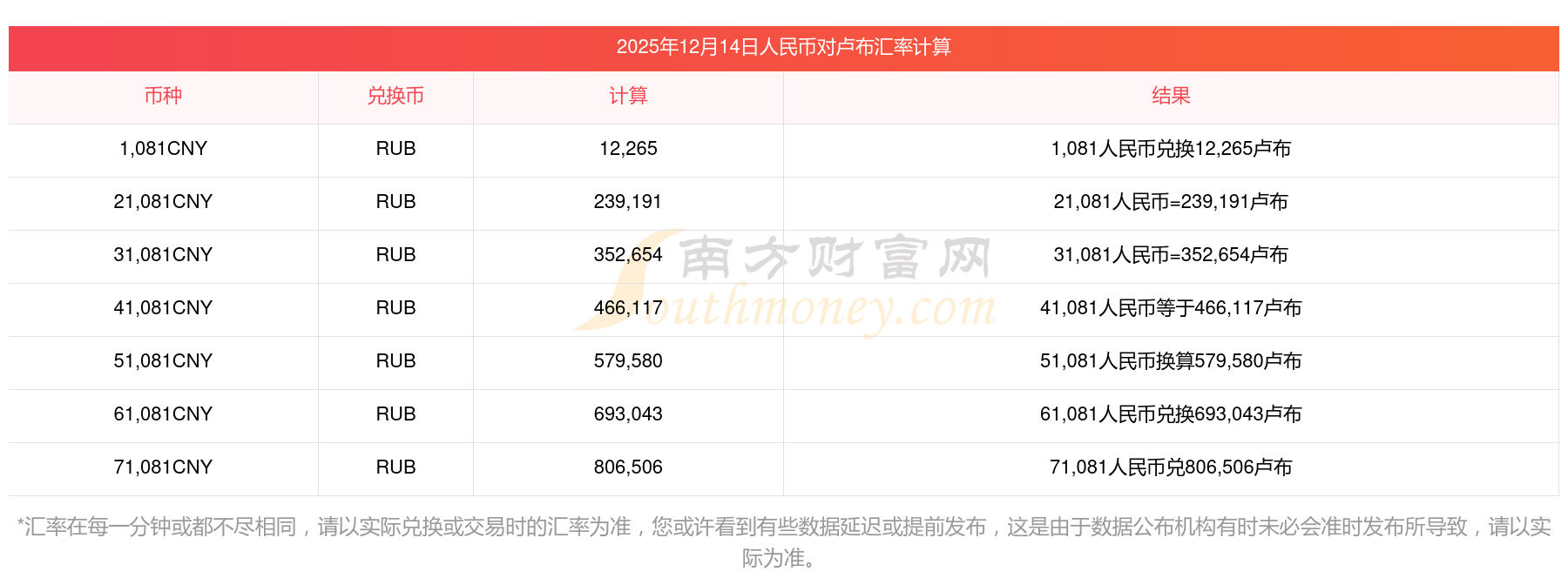 卢布汇率中间价:人民币1元对多少俄罗斯卢布12-14