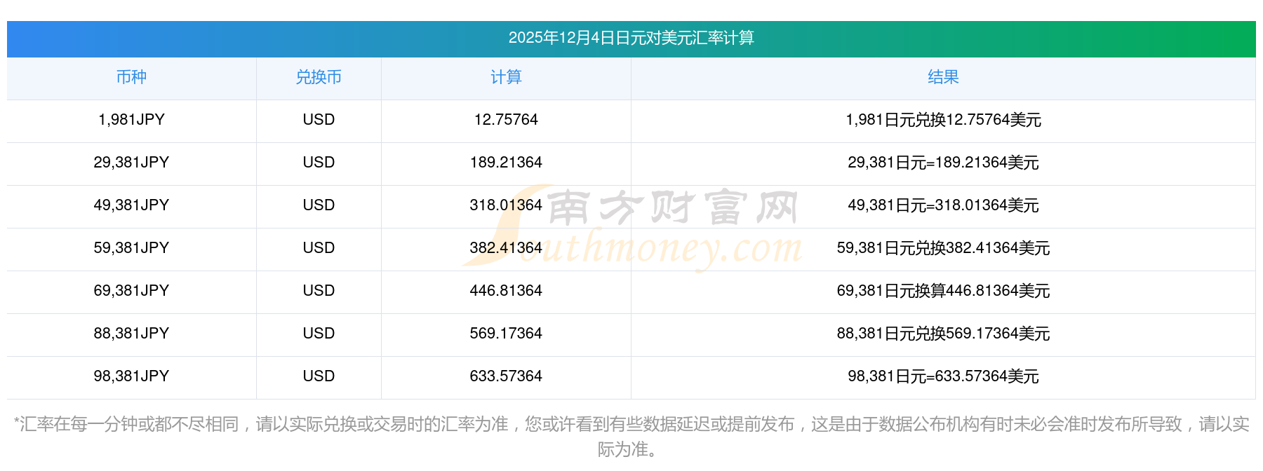 南方财富网为您提供日元对美元汇率最新价格详情。