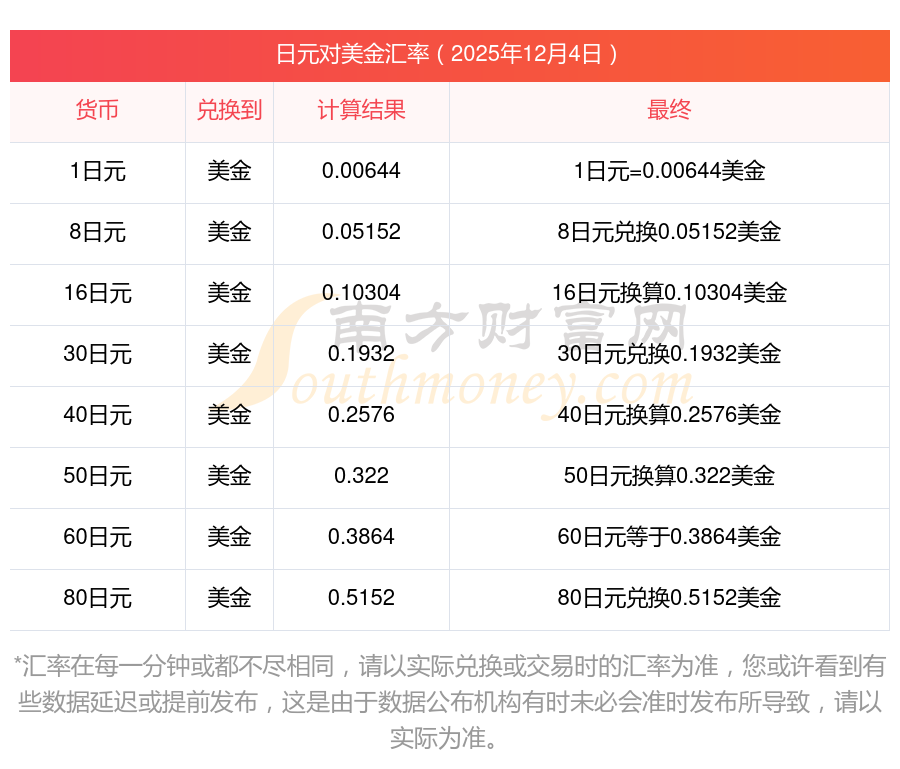 南方财富网为您提供日元对美金汇率最新价格详情。