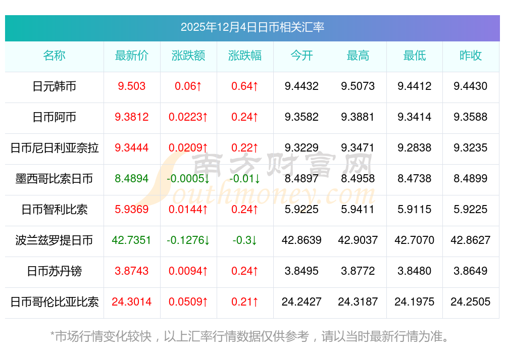 根据2025年12月4日汇率计算,JPY兑换CHF汇率最新价0.005164:今开价0.0052,昨收价0.0052,最高价0.0052,最低价0.0051。