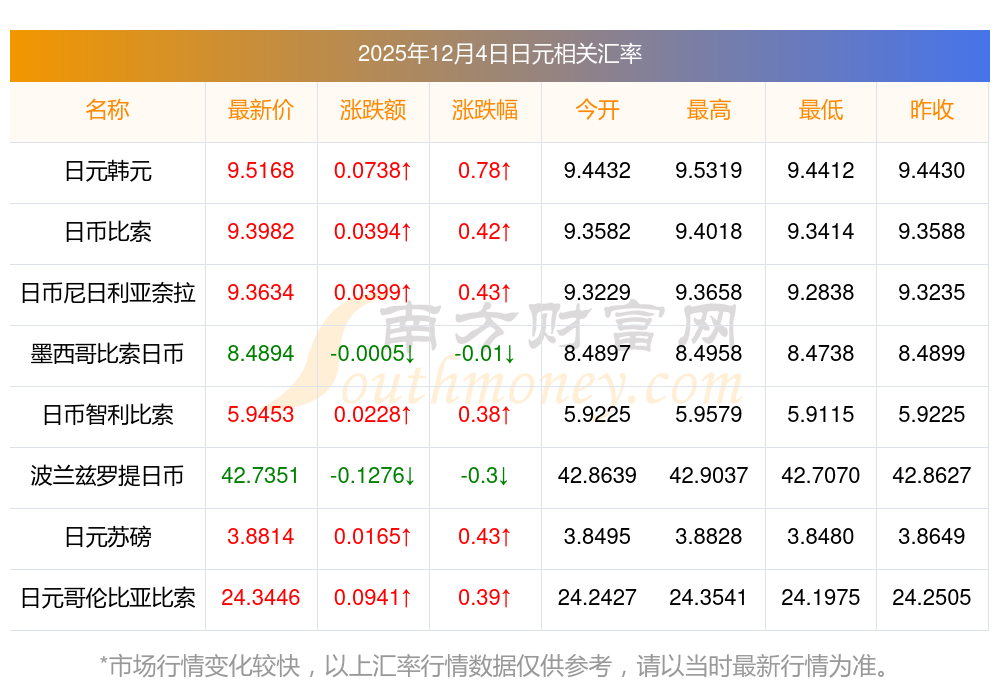 根据2025年12月4日汇率,日元兑换澳门币汇率最新0.051900,今开0.0516,昨收0.0516,最高0.0519,最低0.0516。