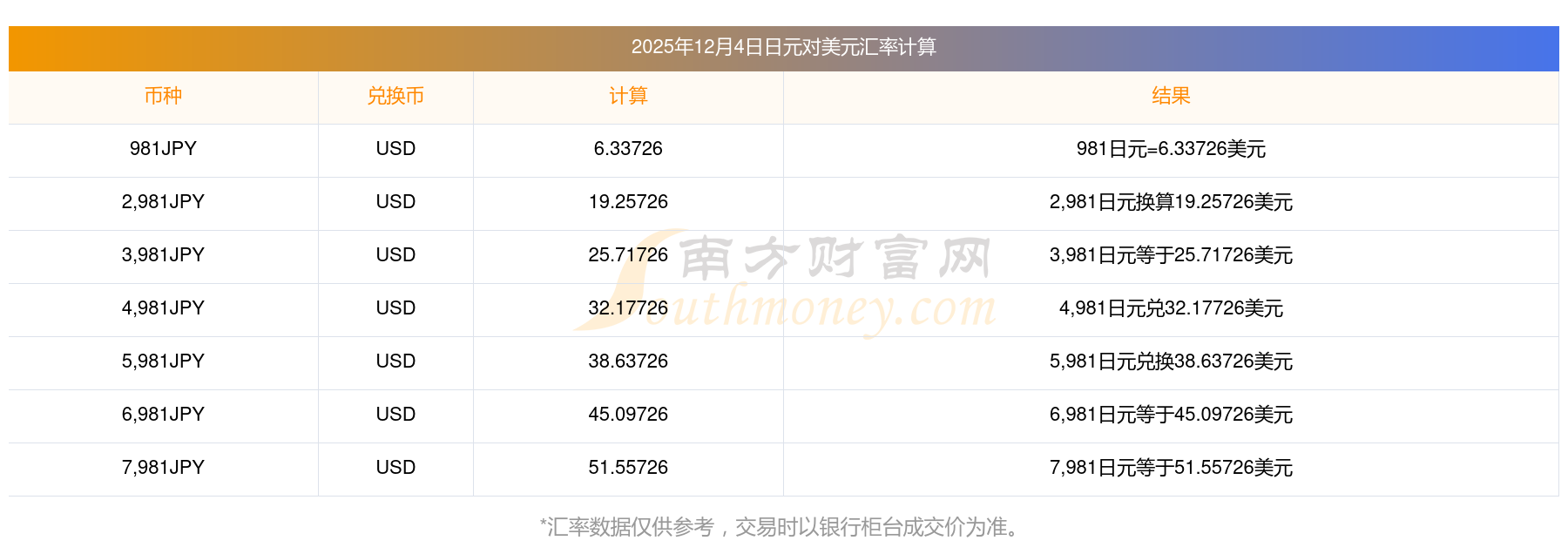 现在4010日元与美元的互换汇率是多少?2025/12/4