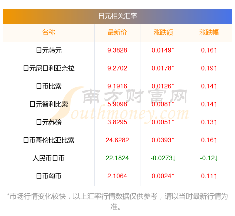 南方财富网为您提供日元对尼日利亚奈拉汇率最新价格详情。