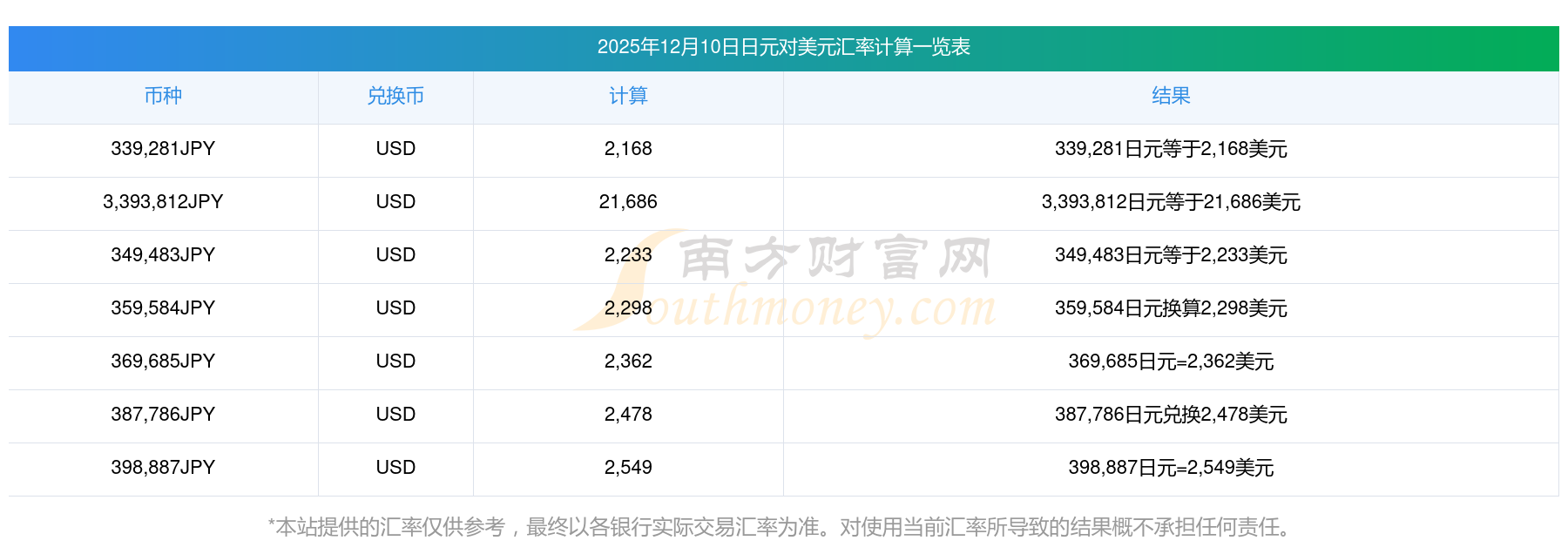 南方财富网为您提供日元对美元汇率最新价格详情。