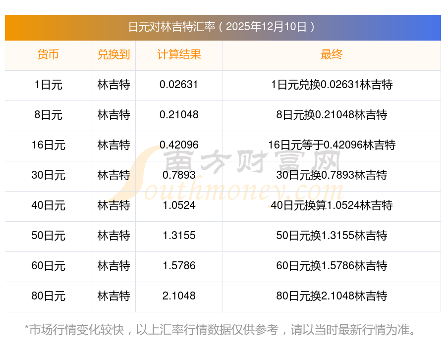 日元对林吉特汇率多少_外汇查询网2025-12-10