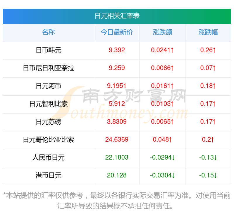 南方财富网为您提供日元对林吉特汇率最新价格详情。