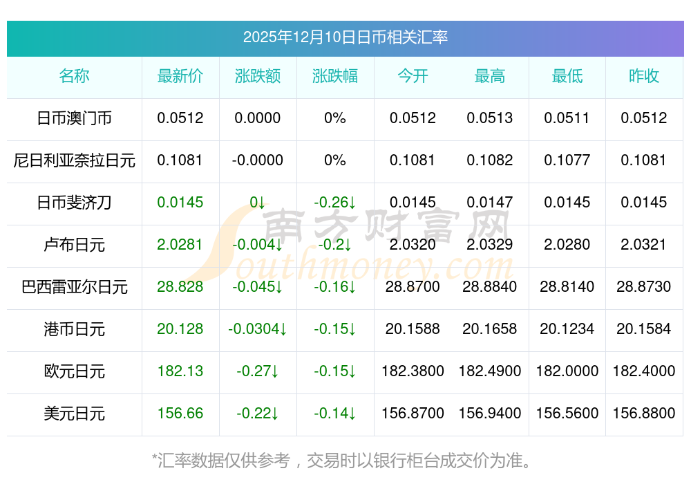 汇率数据仅供参考,交易时以银行柜台成交价为准。