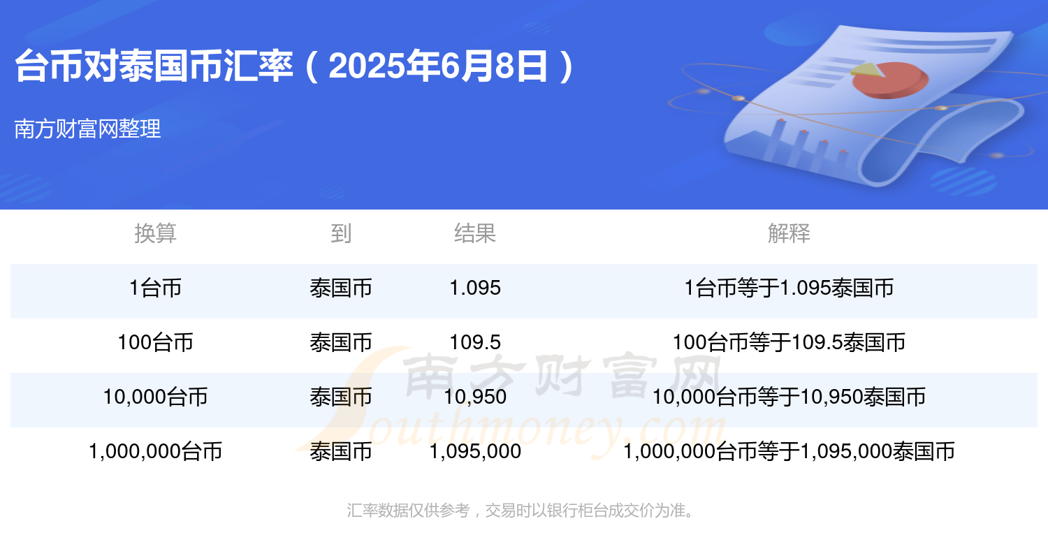 汇率换算:2025年6月8日1台币可以兑换多少泰国币?