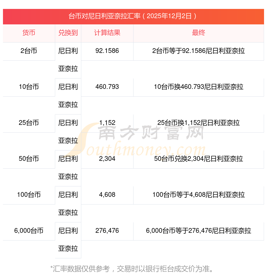 今日汇率调整_将台币与尼日利亚奈拉汇率实时查询 12-02