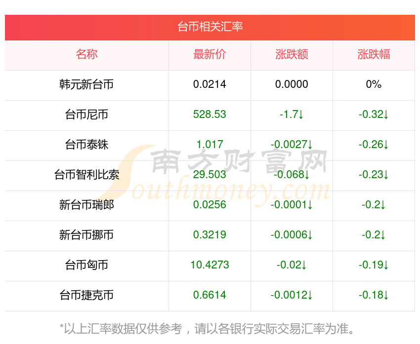 南方财富网为您提供台币对马币汇率最新价格详情。