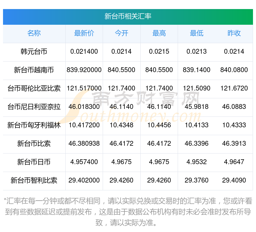 南方财富网为您提供新台币对卢布汇率最新价格详情。