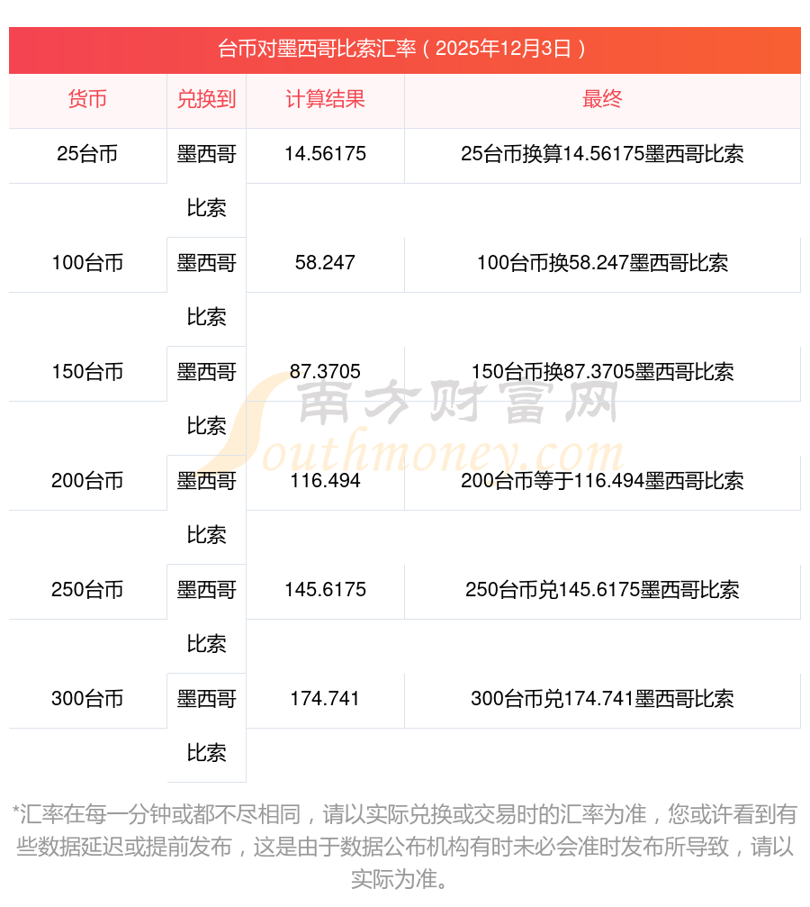 1台币等于多少墨西哥比索(2025年12月3日)