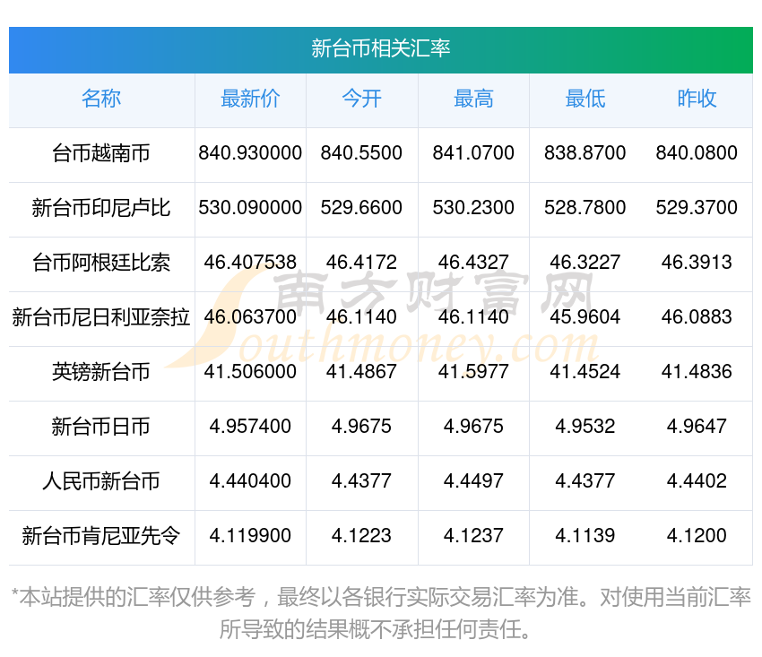 南方财富网为您提供新台币对兰特汇率最新价格详情。