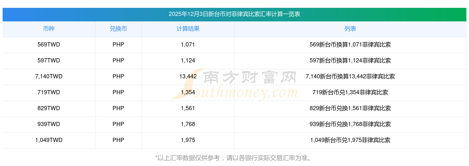 汇率调整新台币兑菲律宾比索每日汇率查询2025-12-3