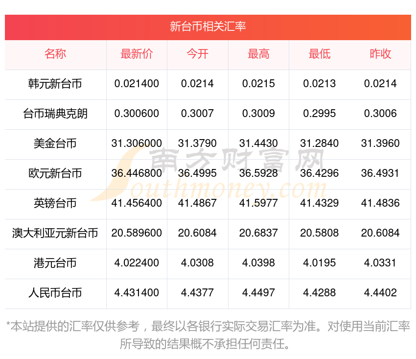 南方财富网为您提供新台币换成菲律宾比索汇率最新价格详情。