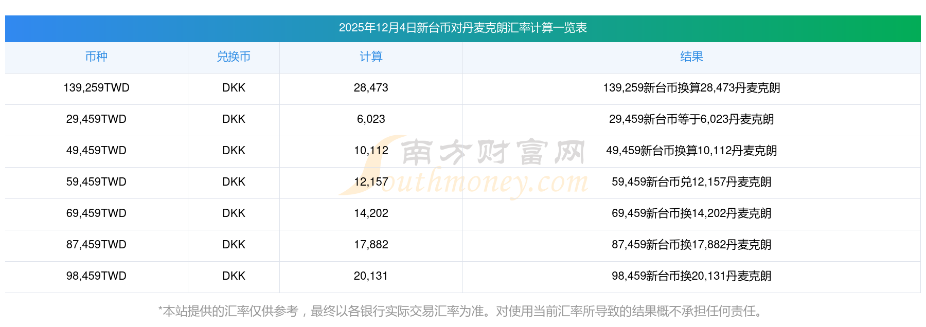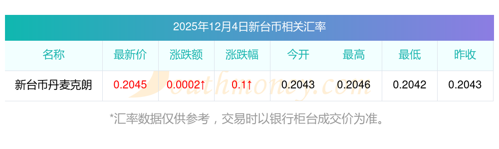 新台币与丹麦克朗兑换汇率_今天实时汇率查询 2025/12/04