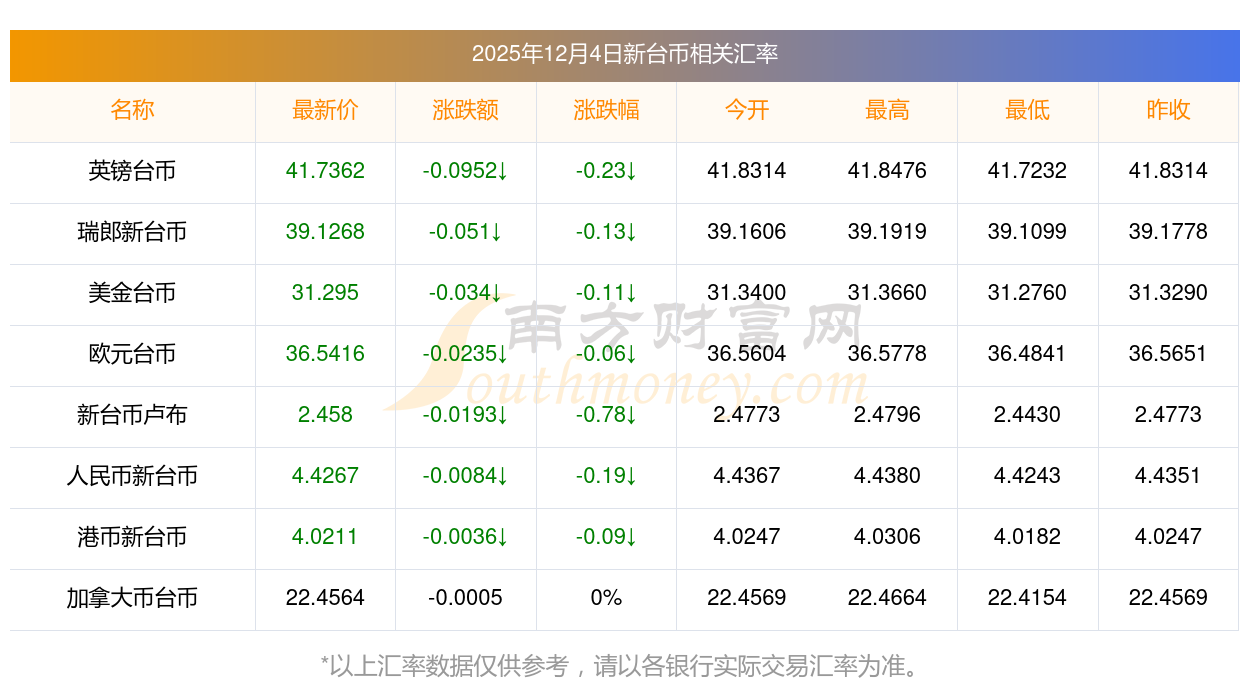 2025年12月4日新台币兑换捷克克朗最新汇率:0.662700,今开:0.6595,昨收:0.6595,最高:0.6630,最低:0.6592。