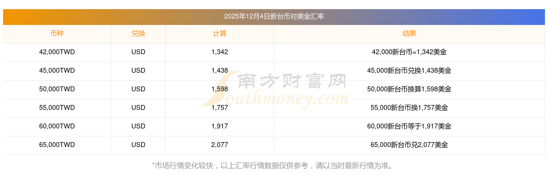 2025年12月4日汇率行情:10新台币对美金汇率多少