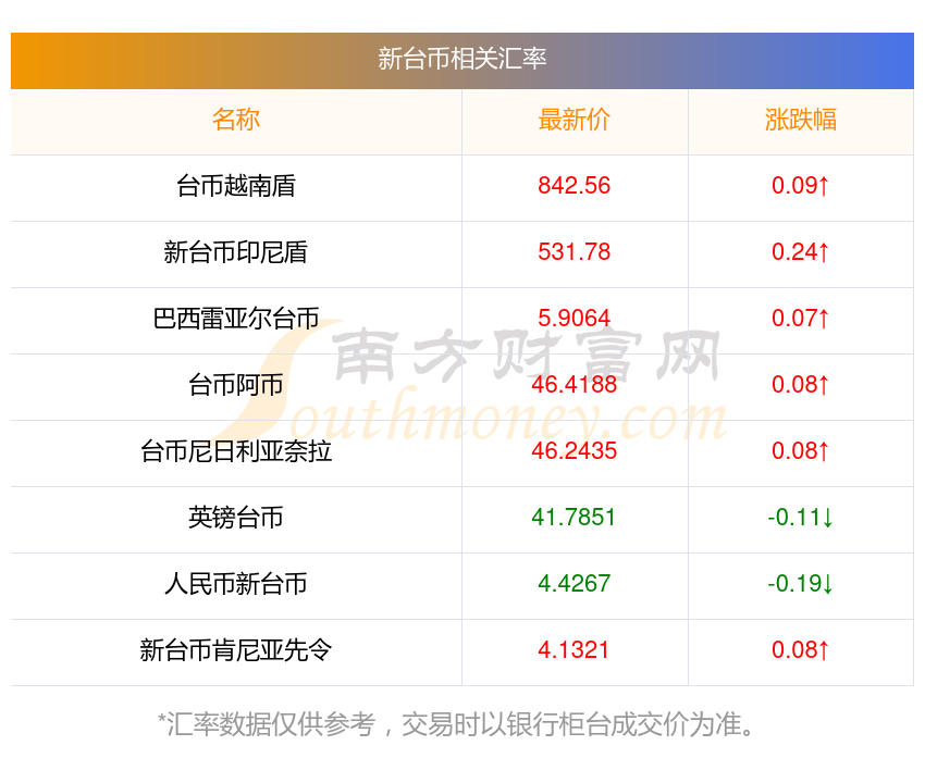 2025年12月4日新台币相关汇率查询