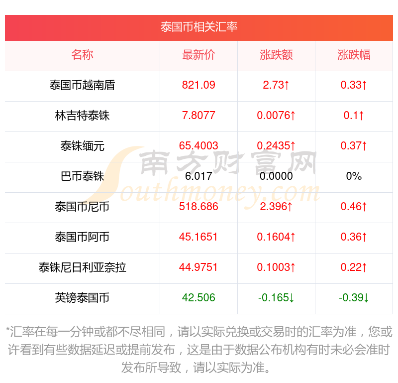 南方财富网为您提供泰国币对马币汇率最新价格详情。