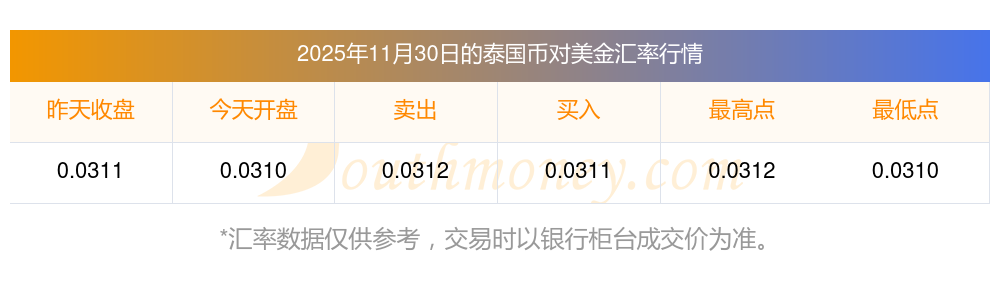 南方财富网为您提供泰国币对美金汇率最新价格详情。