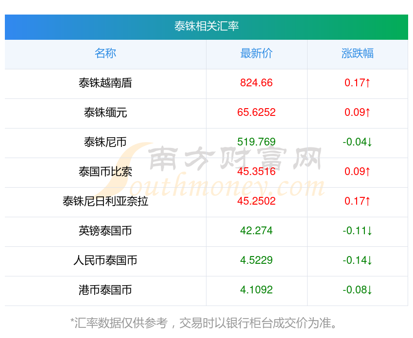 南方财富网为您提供泰铢对越南盾汇率最新价格详情。