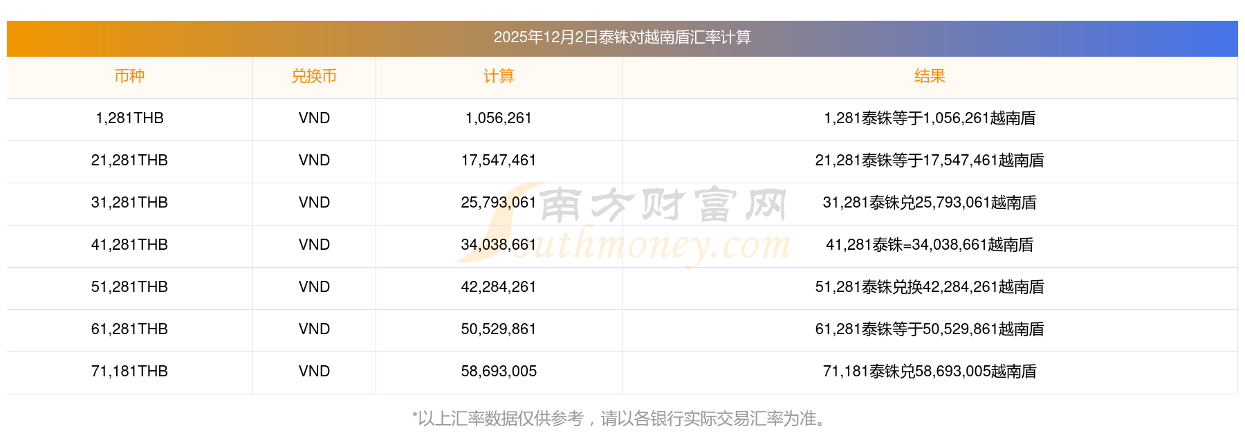 泰铢转换越南盾今天外汇价格表2025-12-2