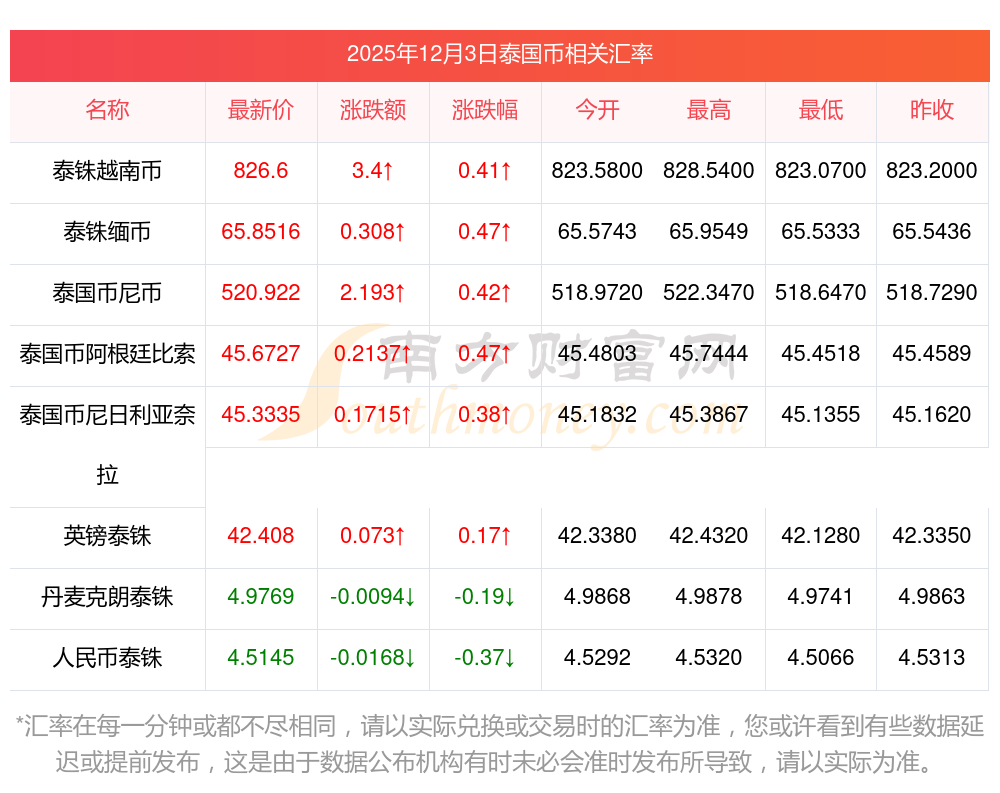 根据2025年12月3日汇率计算,THB兑换RUB汇率最新价2.432600:今日开价2.4200,昨日收价2.4189,最高价2.4542,最低价2.4185。