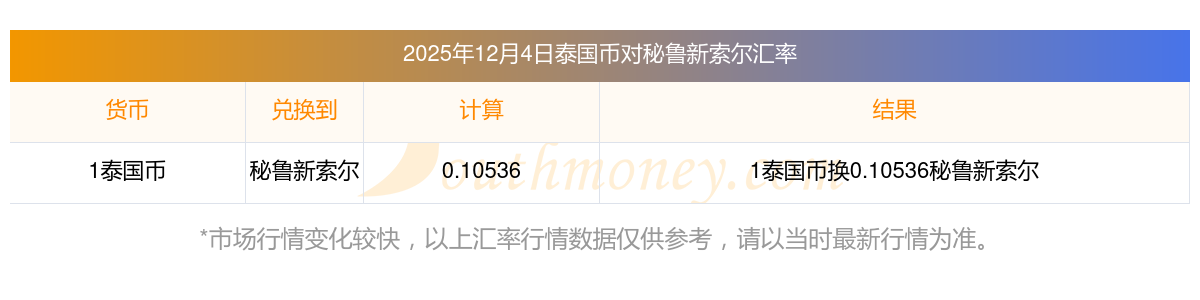今日外汇行情 泰国币兑换秘鲁新索尔今日汇率是多少2025/12/4