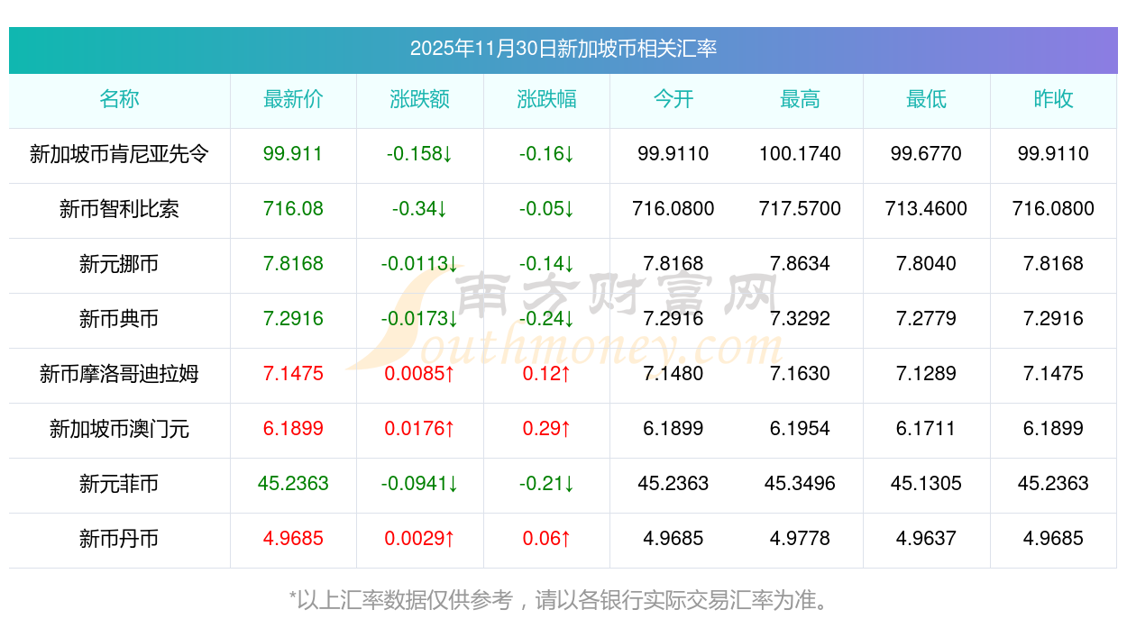 根据2025年11月30日汇率计算,SGD兑换BRL汇率最新价4.117400: