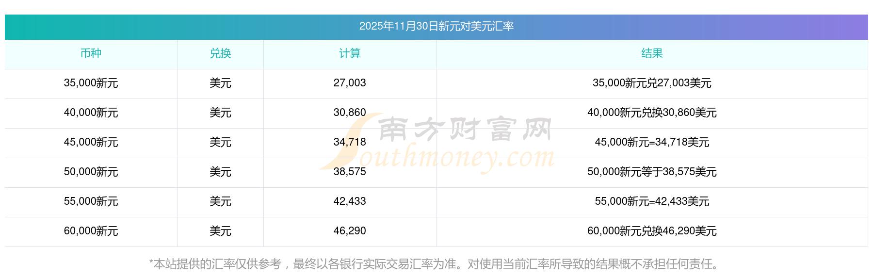 南方财富网为您提供新元对美元汇率最新价格详情。