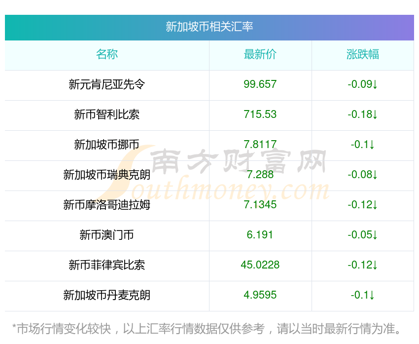 南方财富网为您提供新加坡币对巴西雷亚尔汇率最新价格详情。