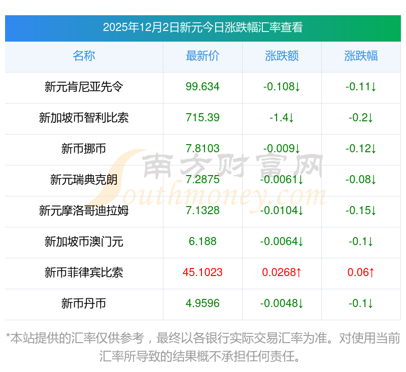 2025年12月2日新元相关汇率查询