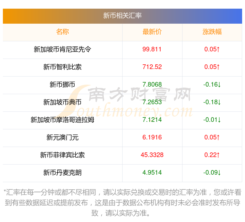 汇率在每一分钟或都不尽相同,请以实际兑换或交易时的汇率为准,您或许看到有些数据延迟或提前发布,这是由于数据公布机构有时未必会准时发布所导致,请以实际为准。