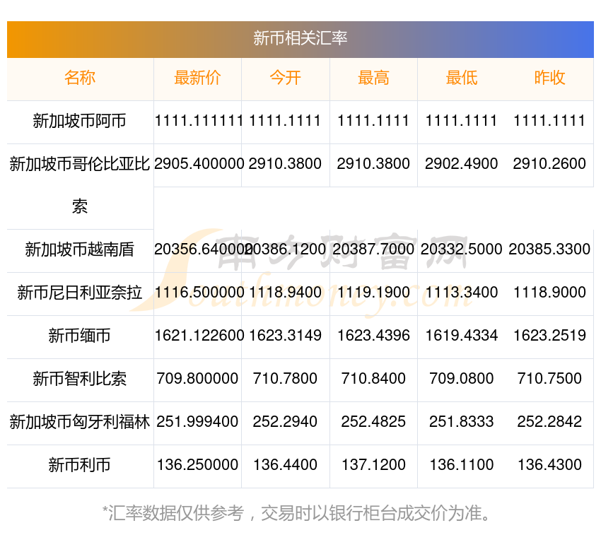 汇率数据仅供参考,交易时以银行柜台成交价为准。