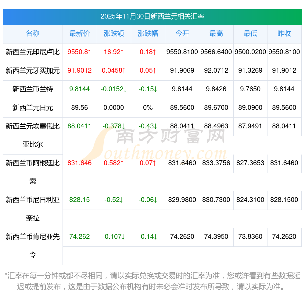 根据今天2025年11月30日汇率计算,NZD兑换CHF汇率最新价0.460900,今开价0.4609,昨收价0.4609,最高价0.4615,最低价0.4597。