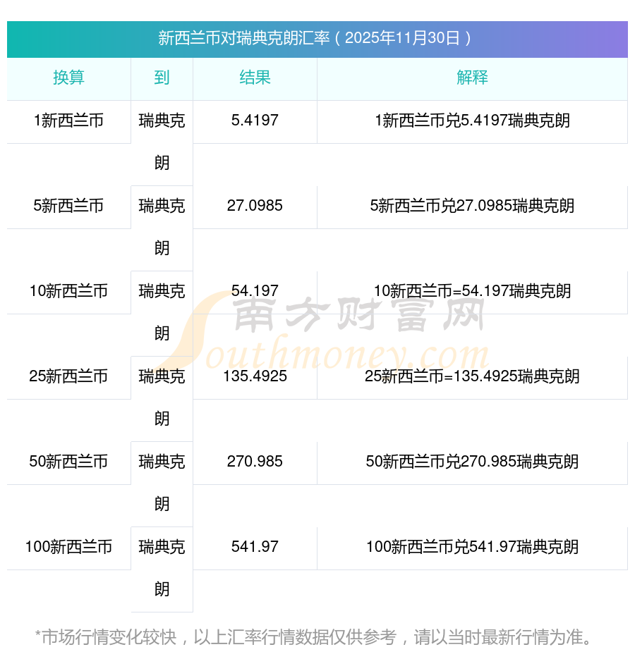 南方财富网为您提供新西兰币对瑞典克朗汇率最新价格详情。