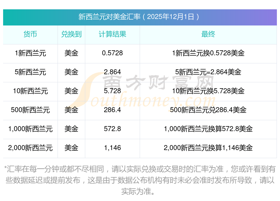南方财富网为您提供新西兰元对美金汇率最新价格详情。