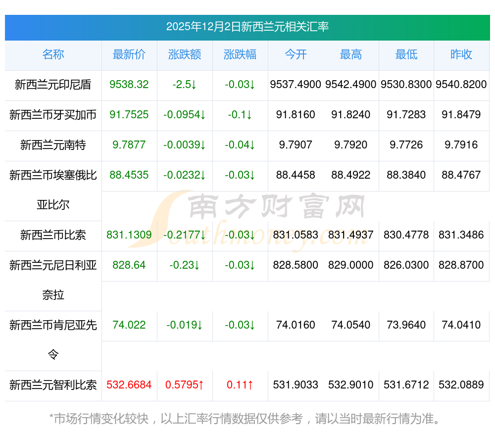 2025年12月2日新西兰元兑换瑞典克朗最新汇率:5.412300,今开:5.4144,昨收:5.4143,最高:5.4244,最低:5.4083。