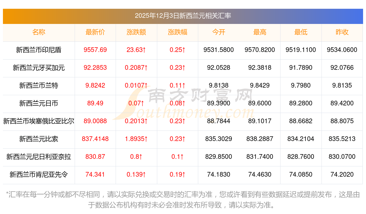 2025年12月3日新西兰元相关汇率查询